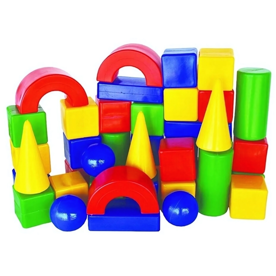 - Широкий спектр форм – кубы, кирпичики, цилиндры, конусы и шары – развивают пространственное мышление.