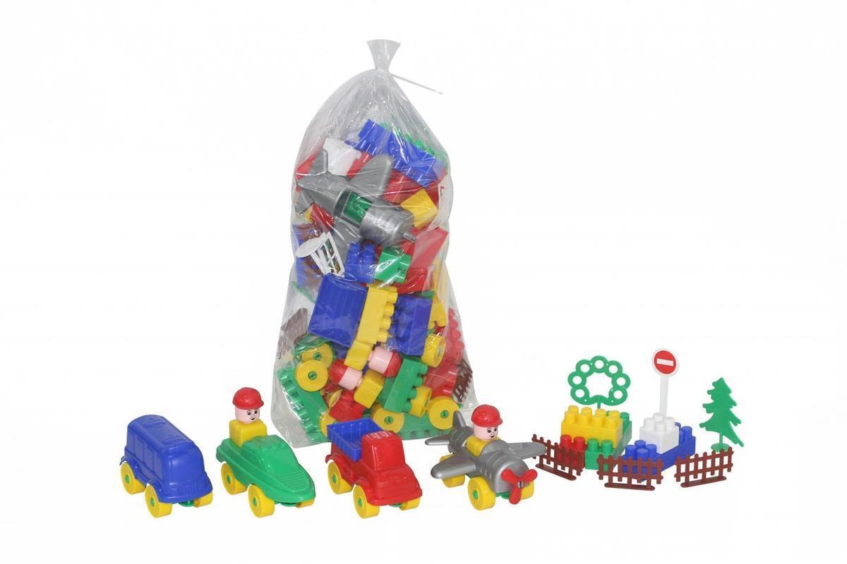 Многоразовая система соединения позволяет собирать и разбирать конструкции множество раз. Разнообразие форм и цветов (красный, желтый, зеленый, синий, белый, серый) способствует развитию цветовосприятия ребенка. В комплект входят фигурки людей и различные дополнительные элементы: деревья, дорожные знаки.