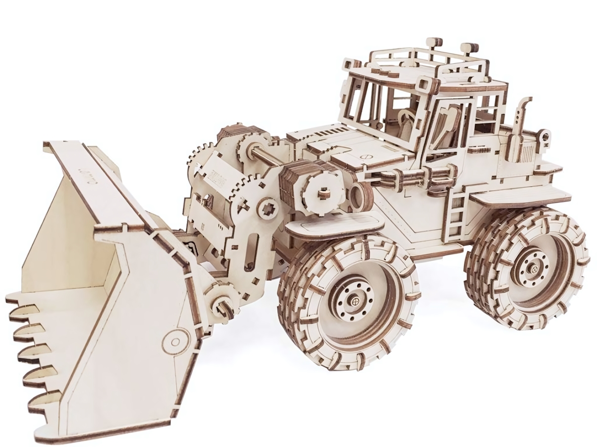 Погрузитесь в увлекательный процесс сборки уникального деревянного конструктора 'Трактор Бульдог'. Создайте точную копию настоящего бульдозера с подвижными элементами, которые работают как у реальной техники.