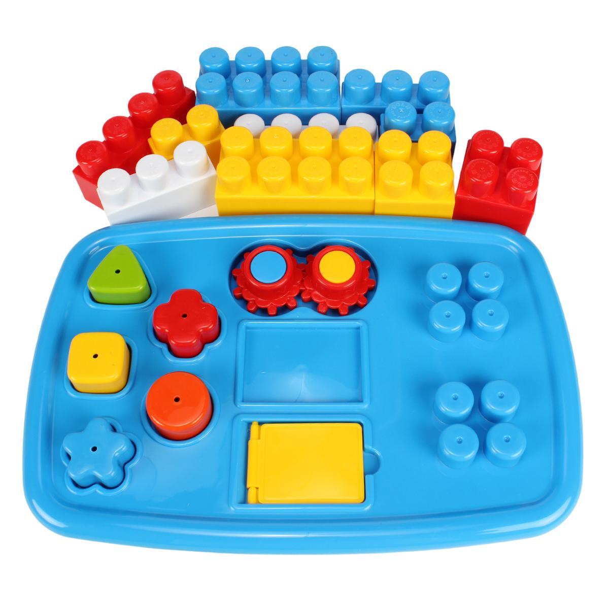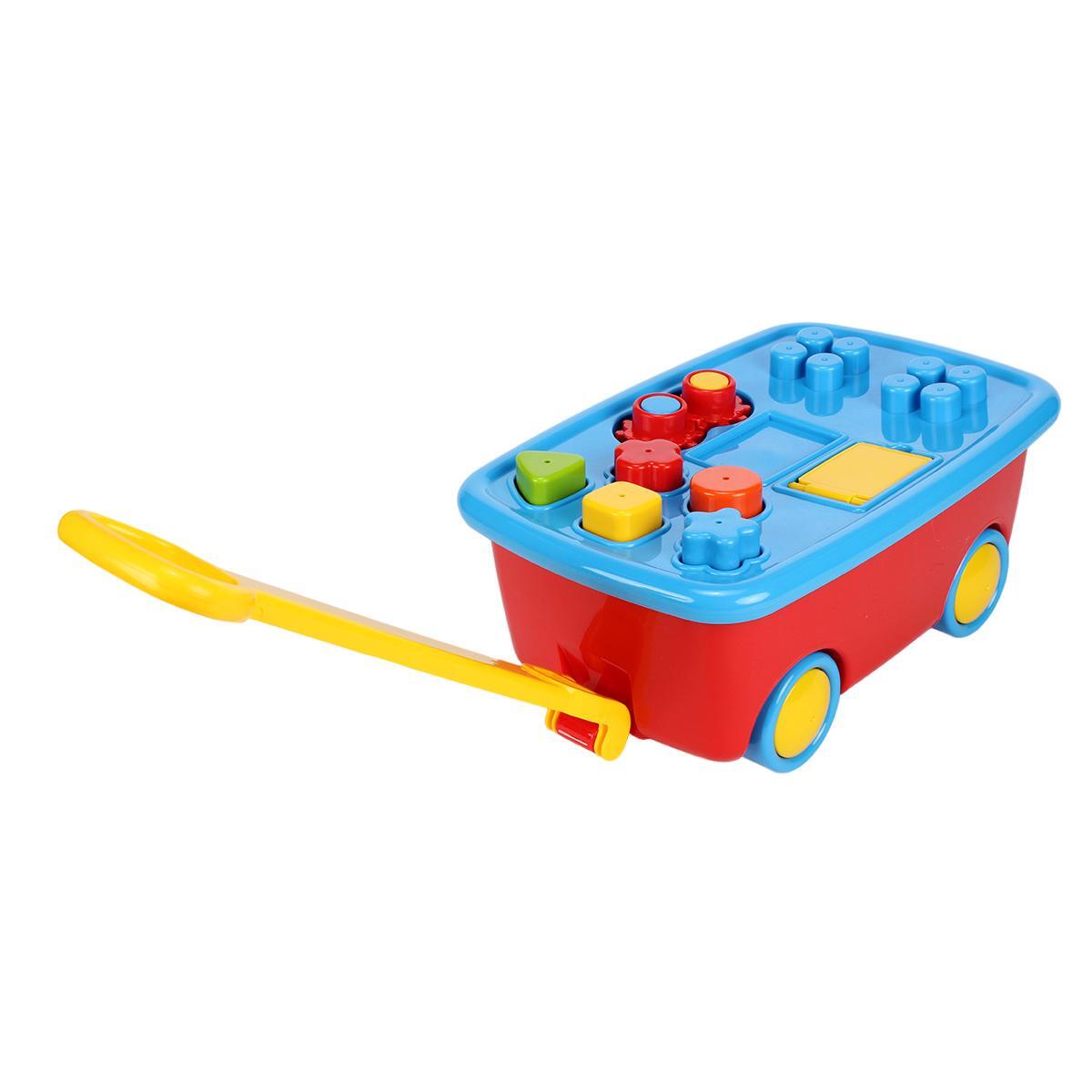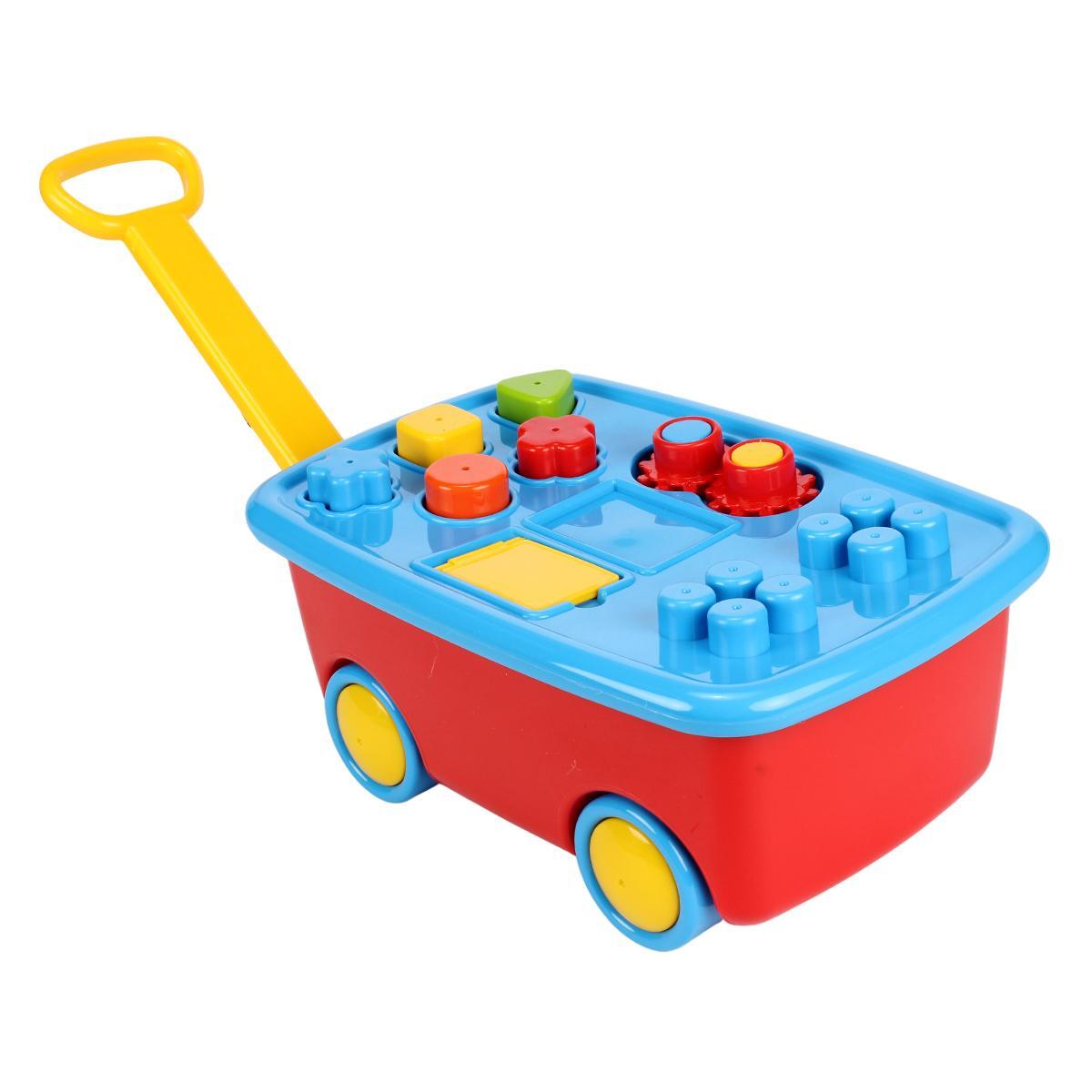 Изготовлен из прочного пластика без острых углов. Все элементы окрашены стойкими нетоксичными красителями. Удобная система хранения: после игры блоки помещаются внутрь тележки, крышка надёжно закрывается. Рекомендовано для детей от 1,5 лет — оптимальный размер деталей соответствует возрастным нормам.