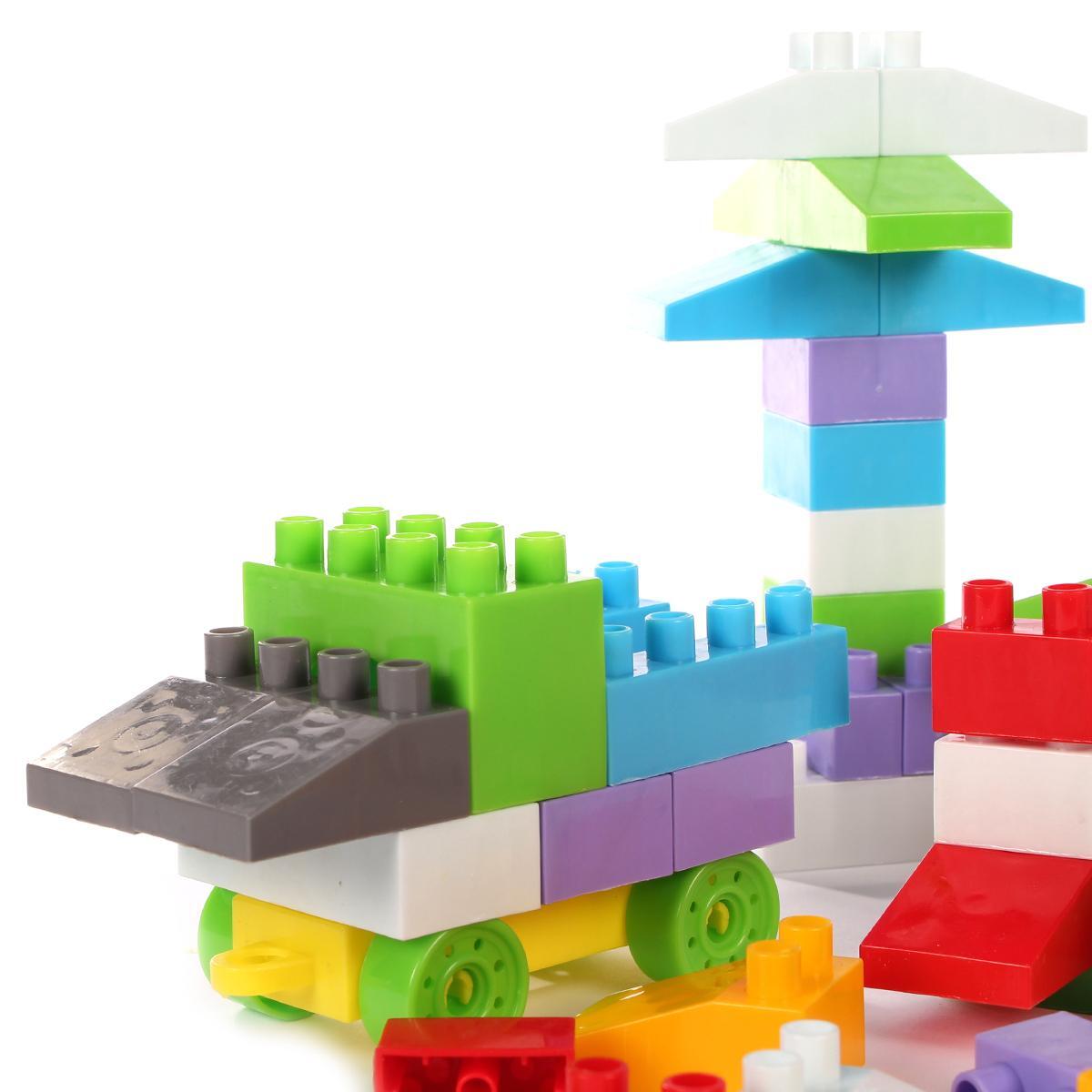 Подходит детям от 3 лет (крупные детали подходят даже малышам от 1 года). Детали легко соединяются, позволяя строить дома, машины, фигурки животных и любые фантазийные постройки как дома, так и на улице – в песочнице или в гостях.