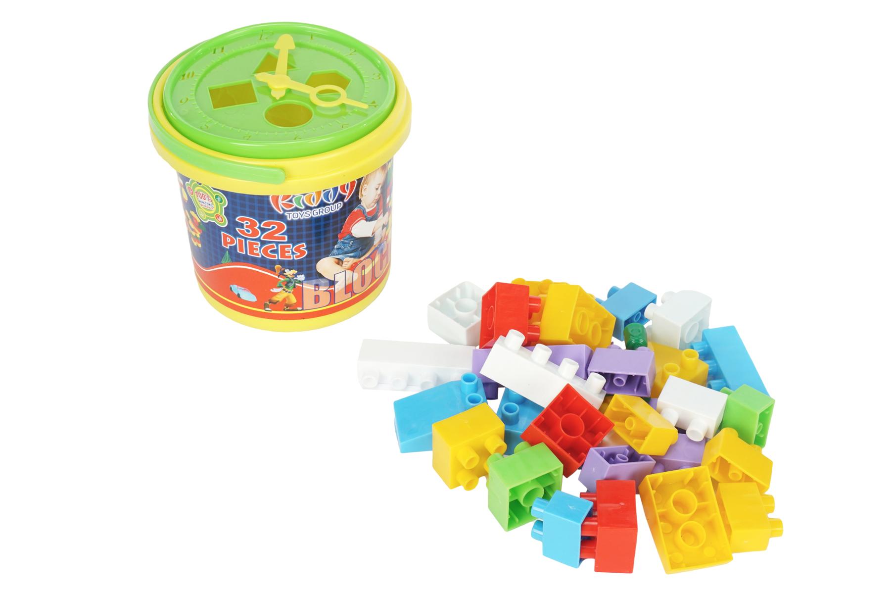Конструктор в ведре BLOCKS №32. Артикул Арт.№042 (в наборе 32 детали конструктора, ведро, крышка от