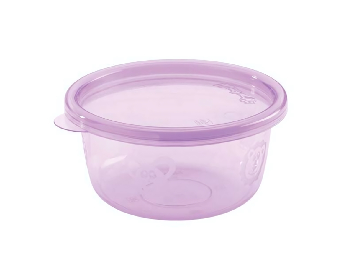 Объём 250 мл оптимален для порционных перекусов. Фиолетовый цвет с рисунком медвежонка развивает цветовосприятие. Универсальная форма позволяет размещать контейнер в любом отделении сумки или холодильника. Подходит для разогрева в микроволновке (без крышки).
