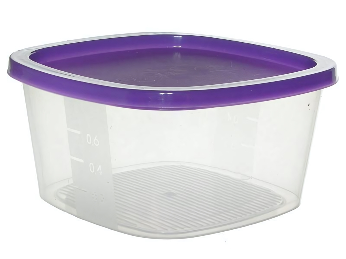 Квадратная форма с округлыми краями экономит место в холодильнике. Прозрачные стенки позволяют быстро идентифицировать содержимое. Совместим с посудомоечной машиной (верхняя корзина). Объем 500 мл соответствует стандартной порции.
