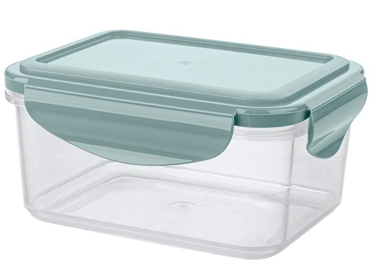 Светло-зеленая крышка с продуманным механизмом фиксации обеспечивает надежное закрытие и легкость открывания. Прямоугольная форма с закругленными углами облегчает мытье и хранение.