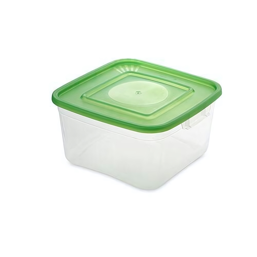 Эргономичная квадратная форма экономит место в холодильнике и морозильной камере. Прозрачный корпус позволяет легко видеть содержимое, а плотно прилегающая зеленая крышка надежно защищает продукты от проливания и посторонних запахов.