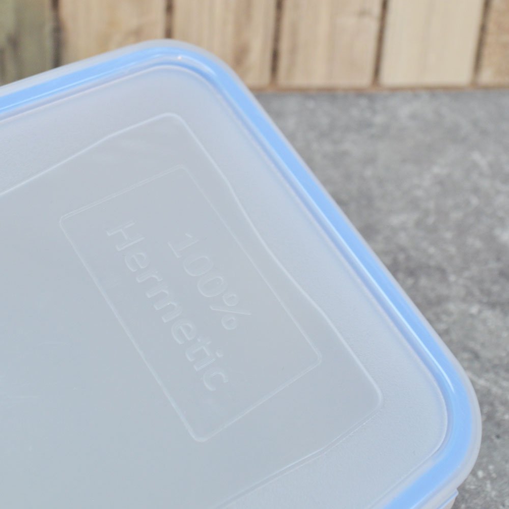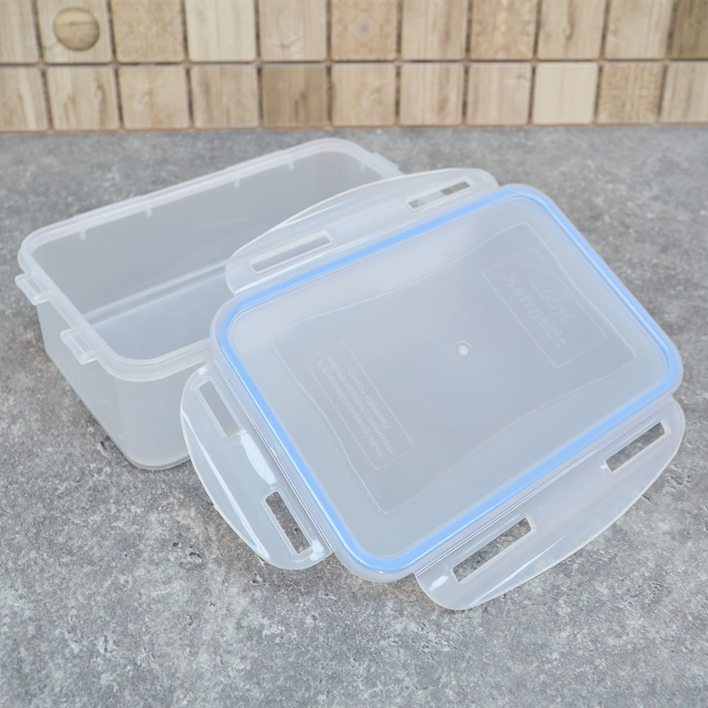 Благодаря прозрачному материалу легко контролировать содержимое без открытия, а плотно закрывающая крышка с зажимами обеспечивает абсолютную герметичность.
