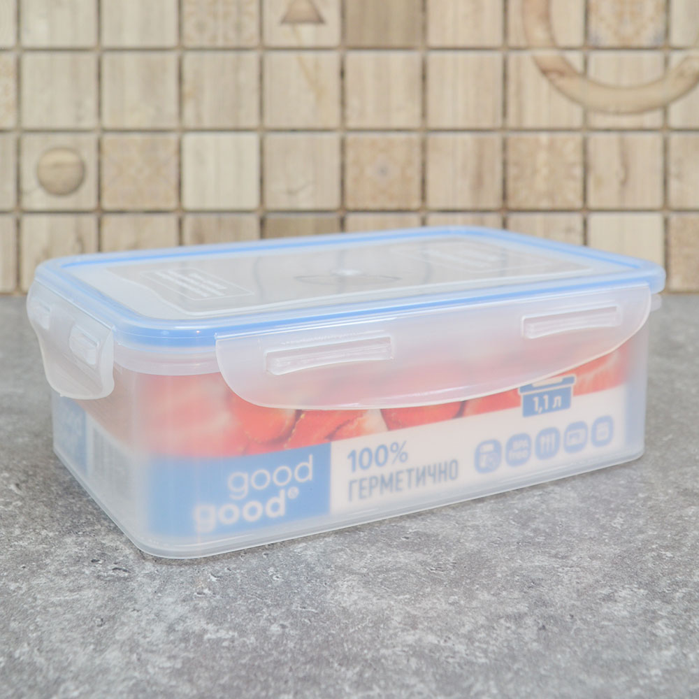Контейнер пластиковый 1.2л с герметичной крышкой, прозрачный, для хранения продуктов