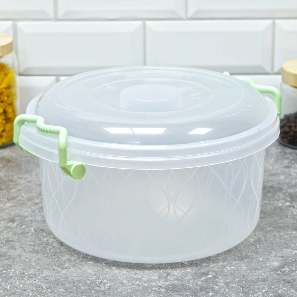 Контейнер для хранения пищевой 5л, герметичный, круглый с ручками, прозрачный