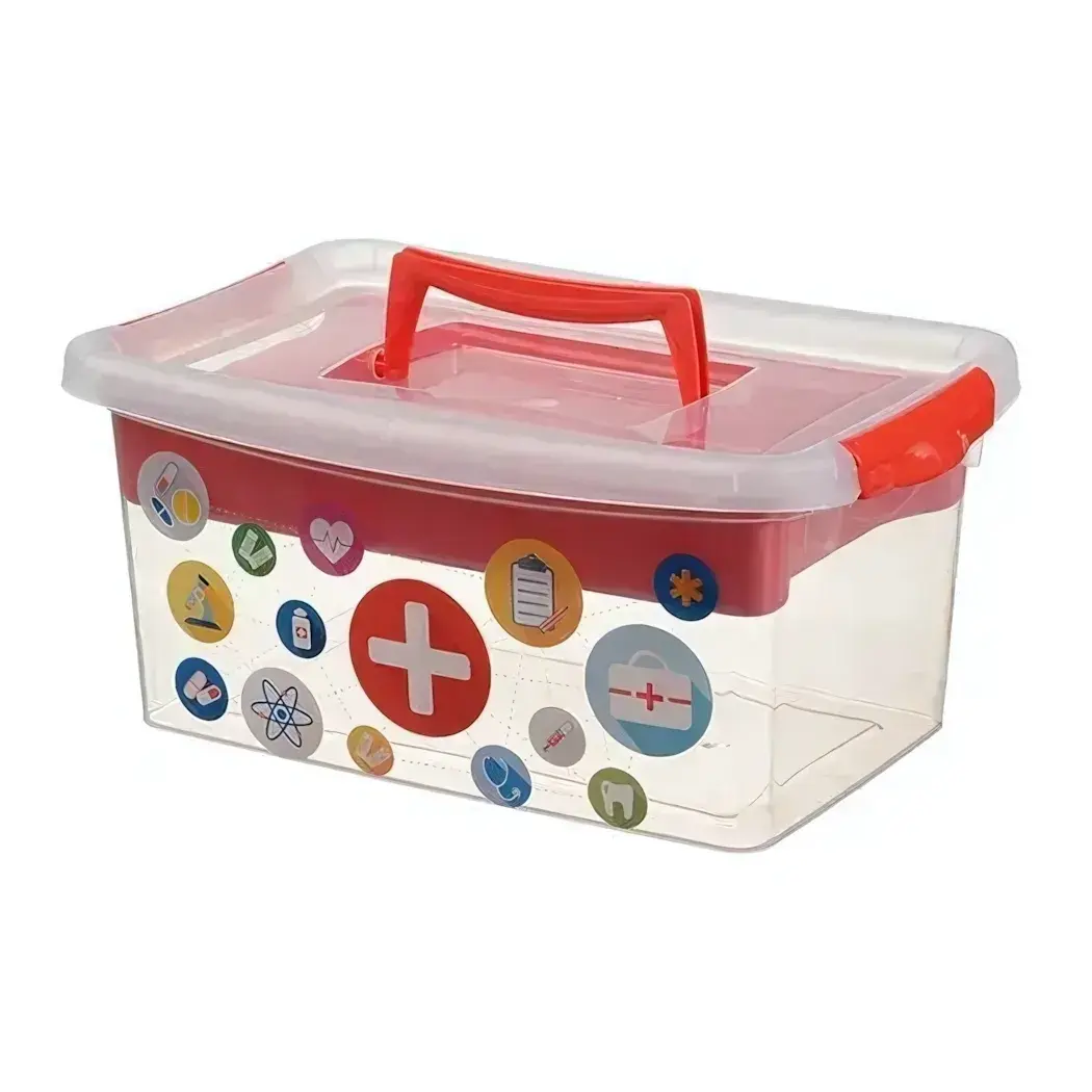 Прозрачный контейнер с красной ручкой идеально подходит для хранения аптечки, медикаментов и средств первой помощи. Четкая видимость содержимого через стенки из ударопрочного пластика экономит время в критических ситуациях.