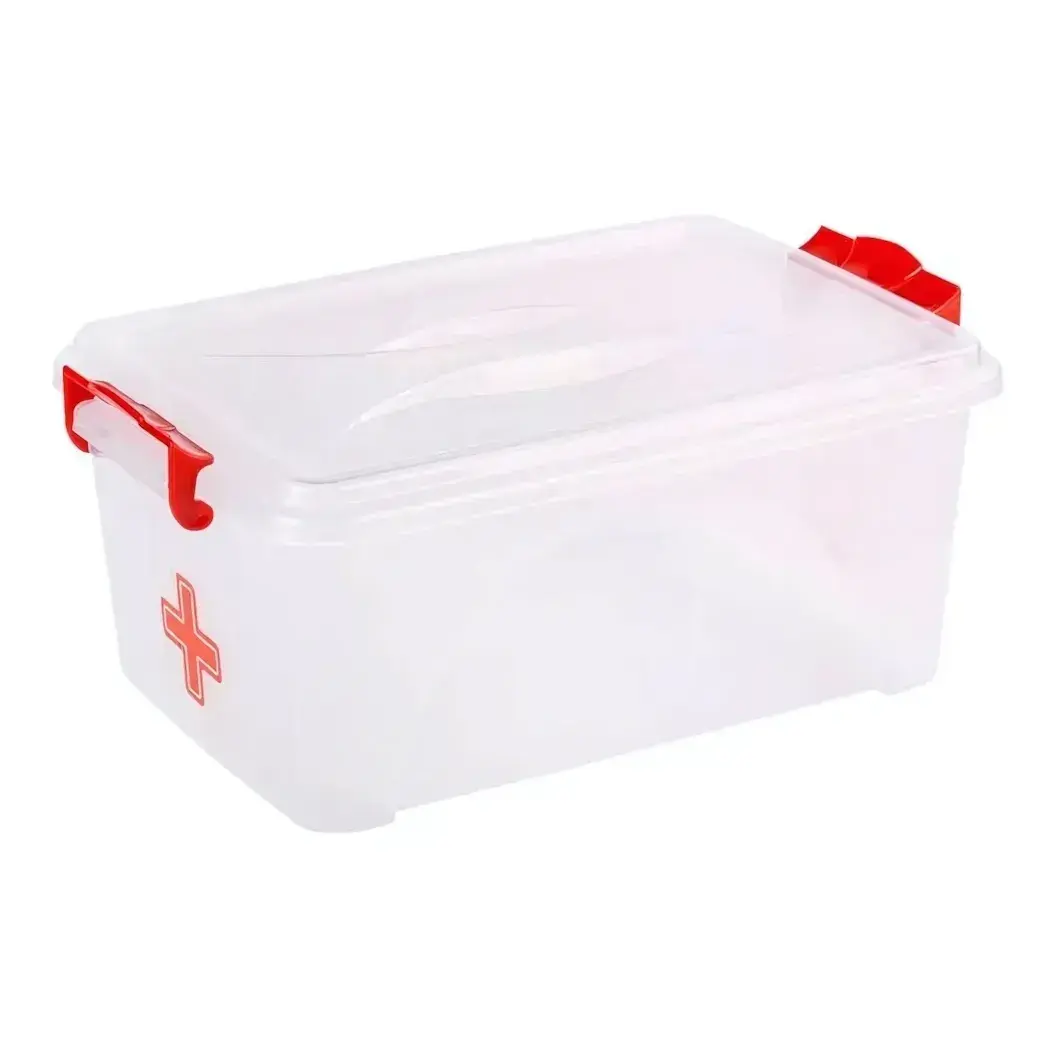 Прозрачный контейнер с красным крестом — идеальное решение для организации домашней аптечки или комплекта первой помощи. Герметичная конструкция и продуманная форма обеспечивают быстрый доступ к содержимому в экстренных ситуациях.