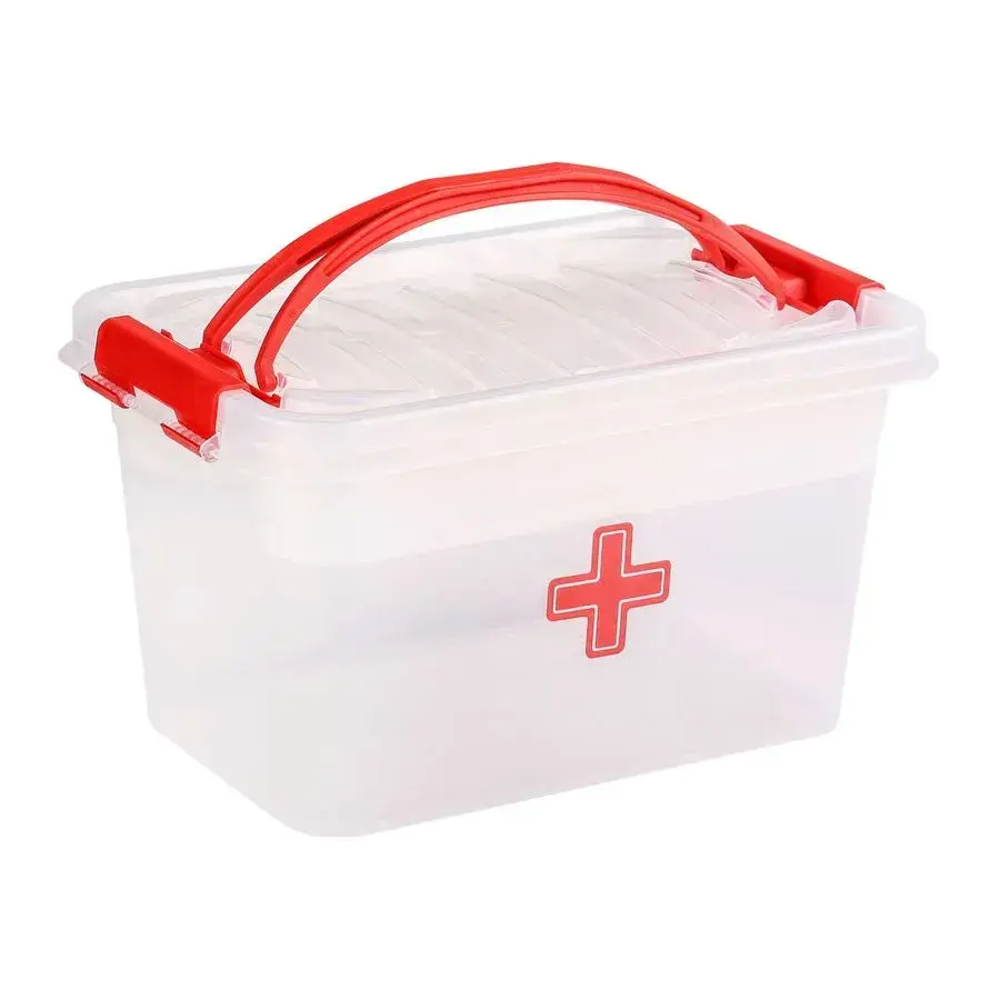 Контейнер пластиковый «Аптечка» 7л, комплект 5 шт, прозрачный с красными деталями, съемная крышка
