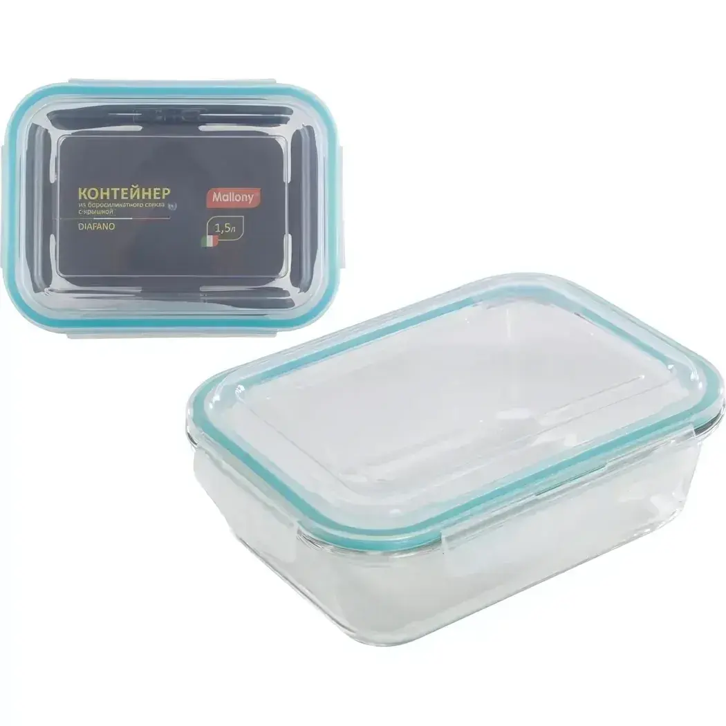 Контейнер DIAFANO из жаропрочного стекла 1500 мл с герметичной крышкой, прямоугольный, для хранения, темп. -40°C