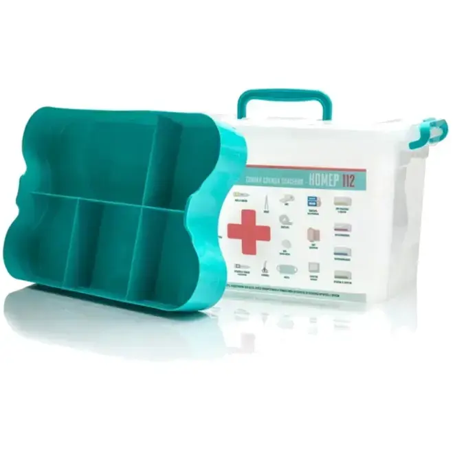 Изделие выполнено из прочного высококачественного пластика и полностью прозрачное, что позволяет быстро найти нужное средство без открытия. Надежная ручка с защелками обеспечивает удобство переноски и безопасное закрытие. На внешней стороне изображение с медицинской информацией добавляет эстетики и информативности.