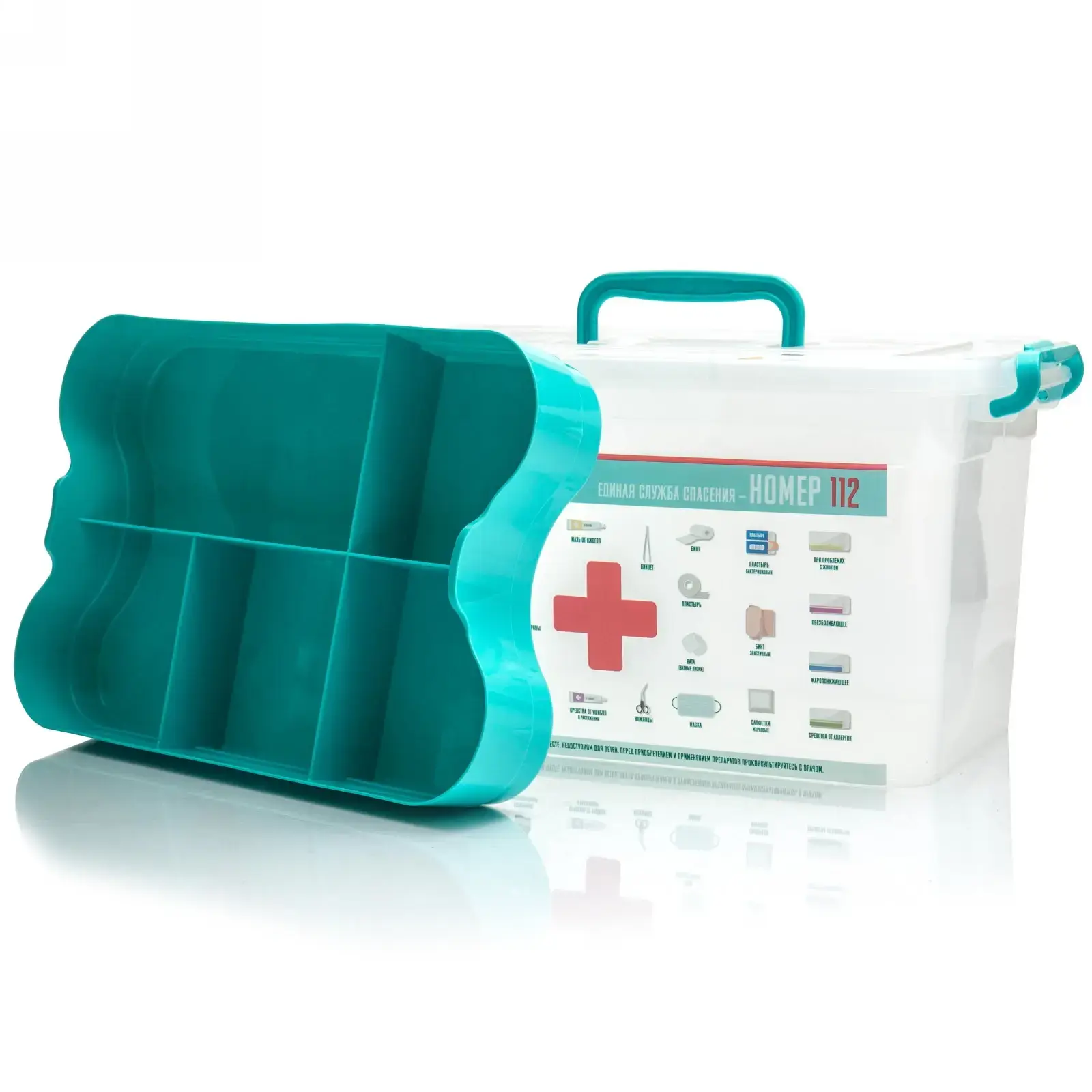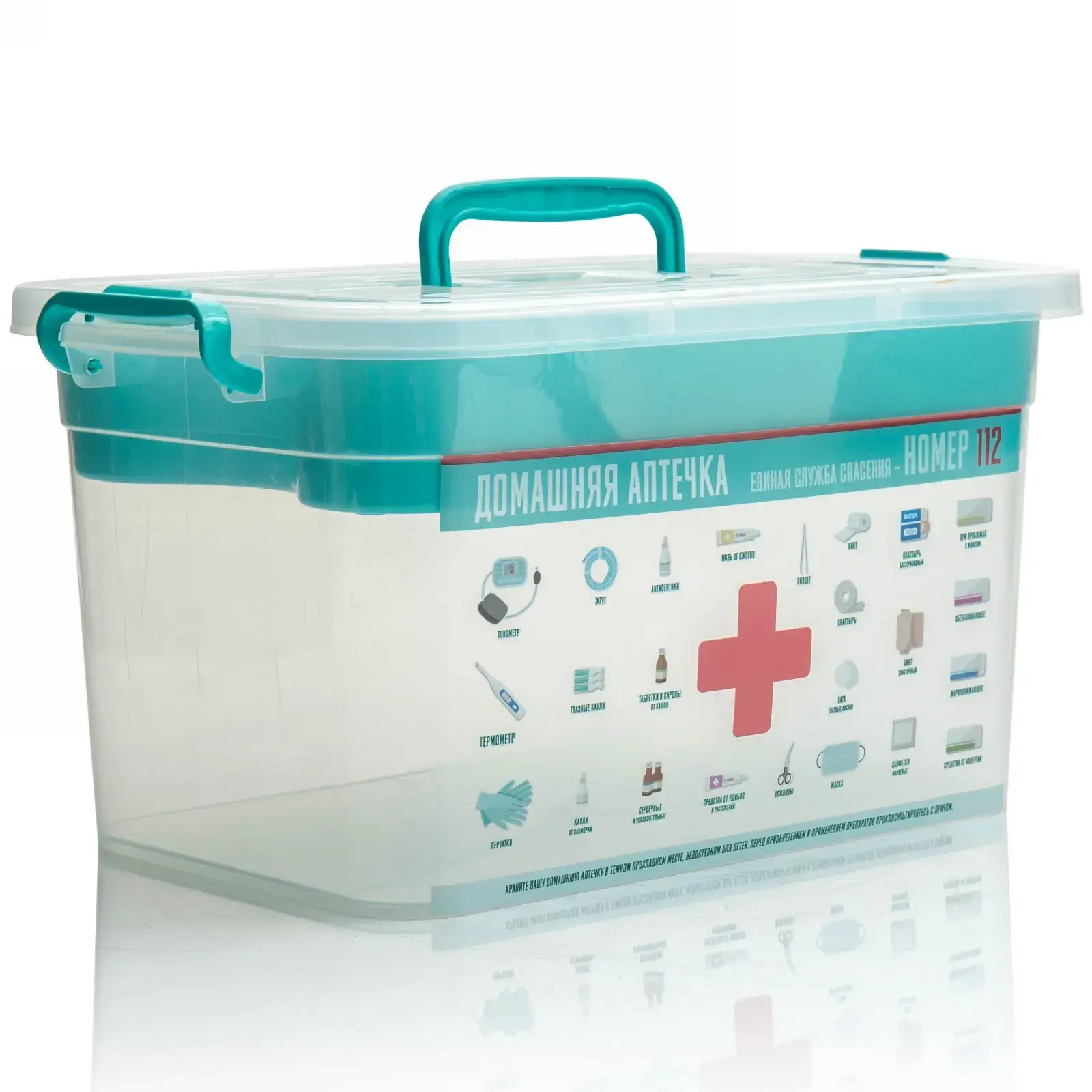 Контейнер идеально подходит для хранения медицинских принадлежностей, таких как бинты, пластыри, термометры и другие необходимые предметы первой помощи. Благодаря удобным ручкам и легкому весу, его можно легко переносить, что делает его идеальным для использования как в домашних условиях, так и в поездках.