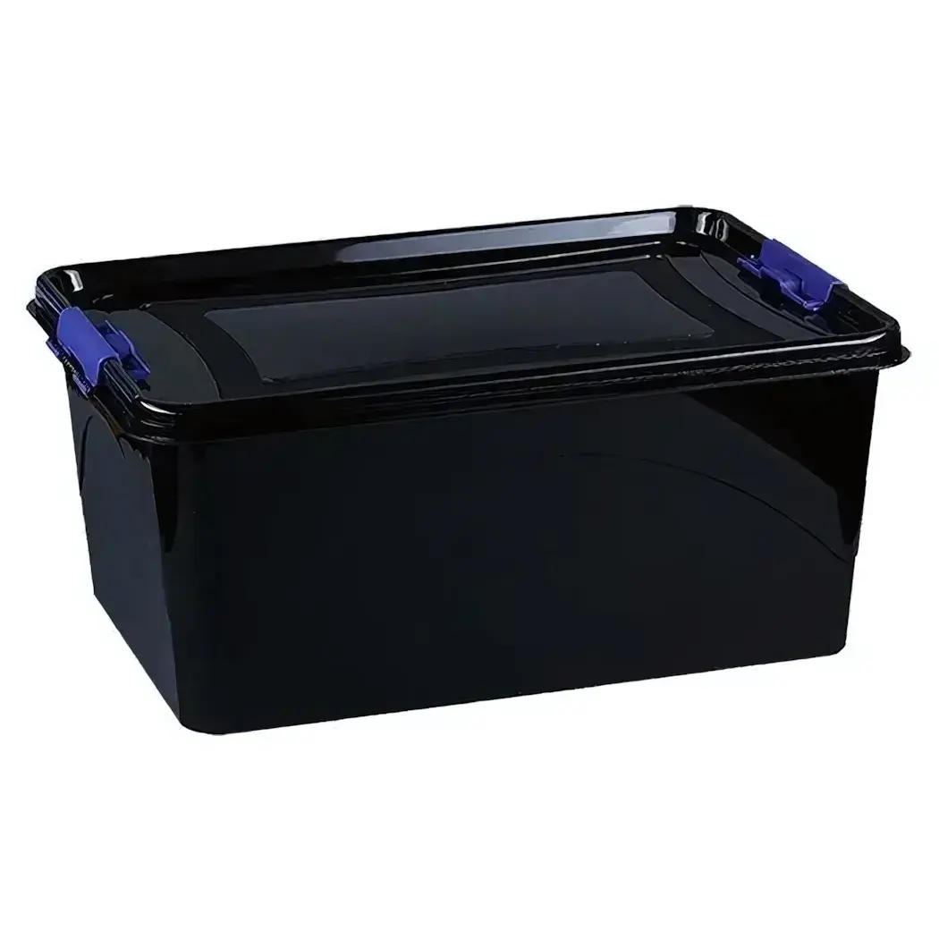 Подходит для сезонной одежды, инструментов, детских игрушек и хозяйственных мелочей. Чёрный цвет маскирует загрязнения и гармонично вписывается в интерьер. Габариты 45х35х30 см позволяют разместить контейнер под кроватью или в шкафу.