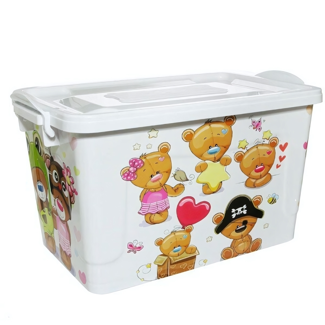 Контейнер для хранения детей 35 л, белый, с рисунком медвежат, удобные ручки и крышка