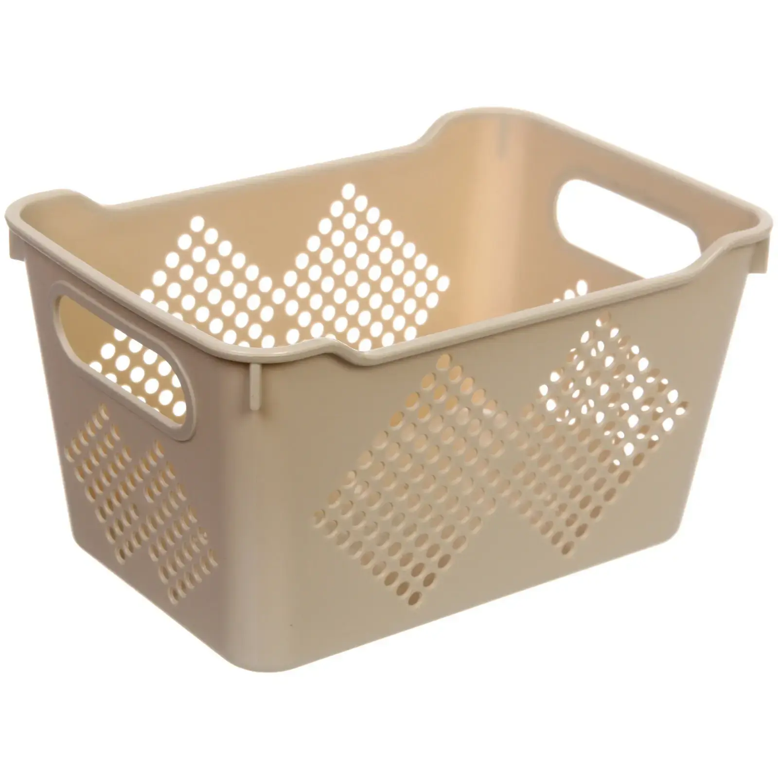 Эта универсальная корзина идеально подходит для хранения различных вещей: от игрушек до канцелярских принадлежностей. Благодаря своим компактным размерам (22*15*12 см) она легко помещается на полках, в шкафах или на столах. Два удобных выреза для захвата позволяют легко переносить корзину, что делает ее идеальной для использования в любом помещении.
