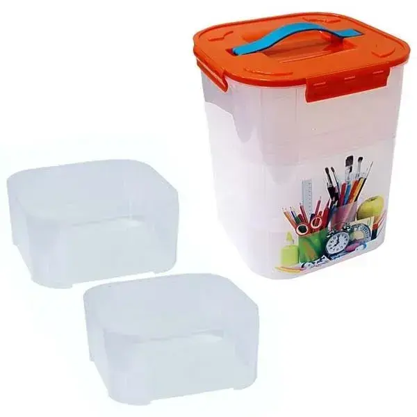 Организуйте пространство с помощью практичного контейнера 'ДЕКО' объемом 10 литров. В комплекте идут два дополнительных вкладыша для мелочей, что делает его идеальным решением для хранения канцелярских принадлежностей, инструментов или бытовых мелочей.