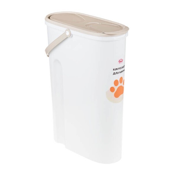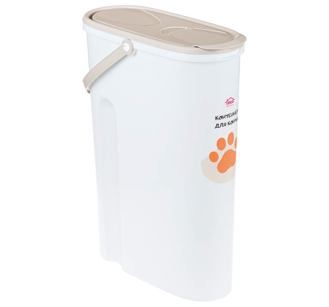 Благодаря ручке, выполненной сбоку, контейнер легко переносить и удобно зачерпывать корм. Его компактные размеры позволяют разместить контейнер в любой удобной зоне дома, кухне или коридоре.