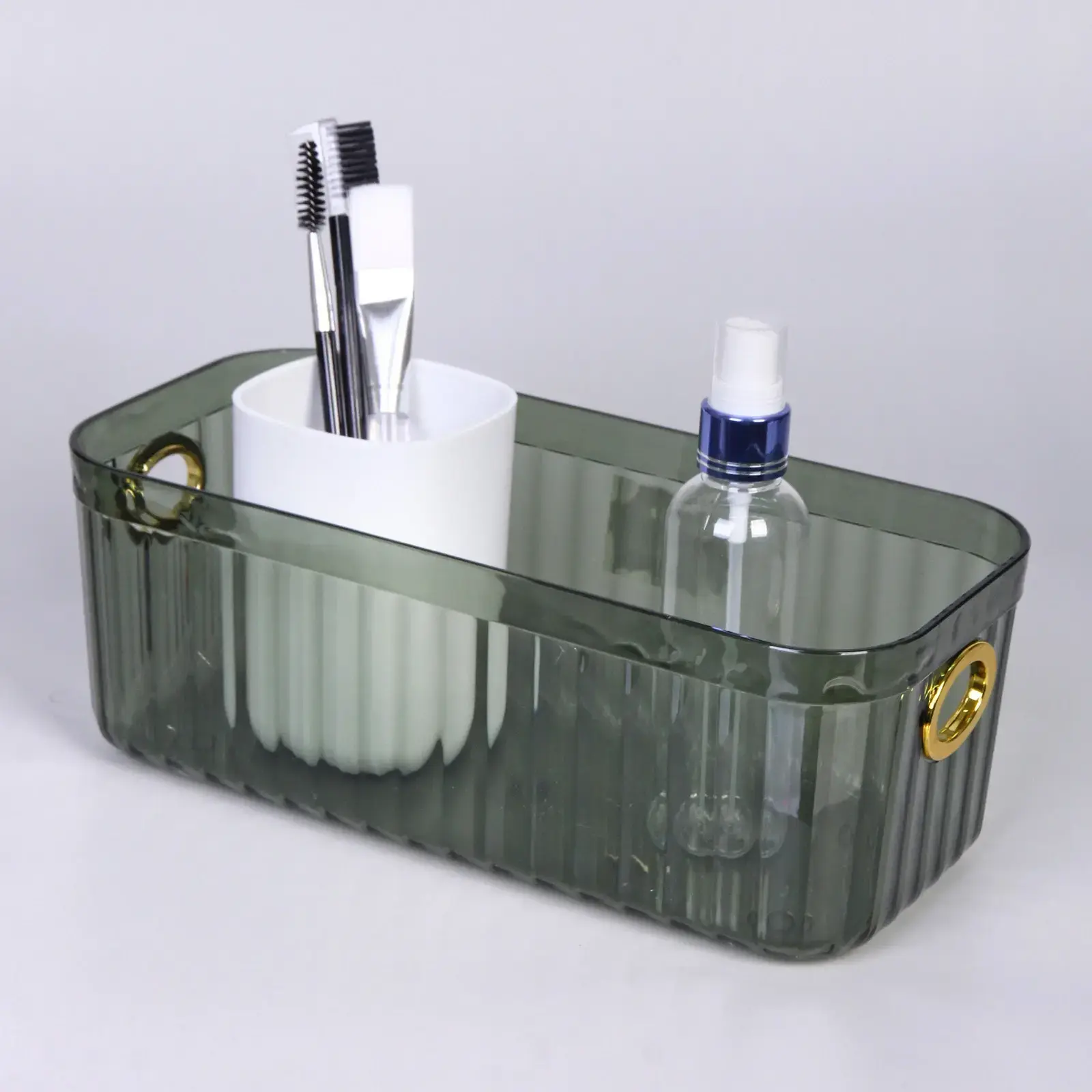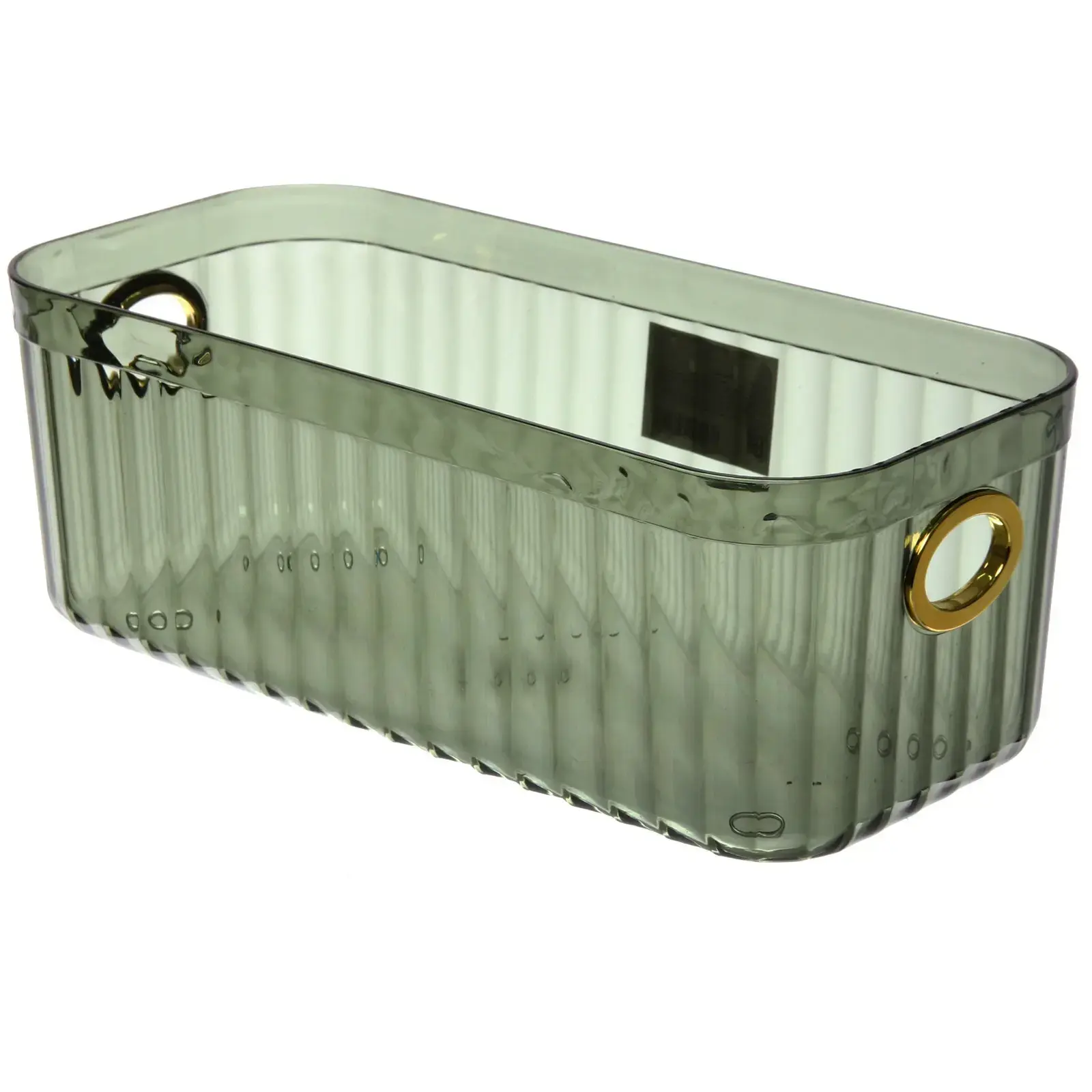 Контейнер идеально подходит для хранения косметики, канцелярских принадлежностей или мелочей. Благодаря своим размерам 26х12х9,8 см, он легко впишется в любую комнату — будь то ванная, кухня или рабочий кабинет. Удобные золотистые ручки по бокам позволяют легко переносить контейнер, что делает его идеальным для использования в любом месте.