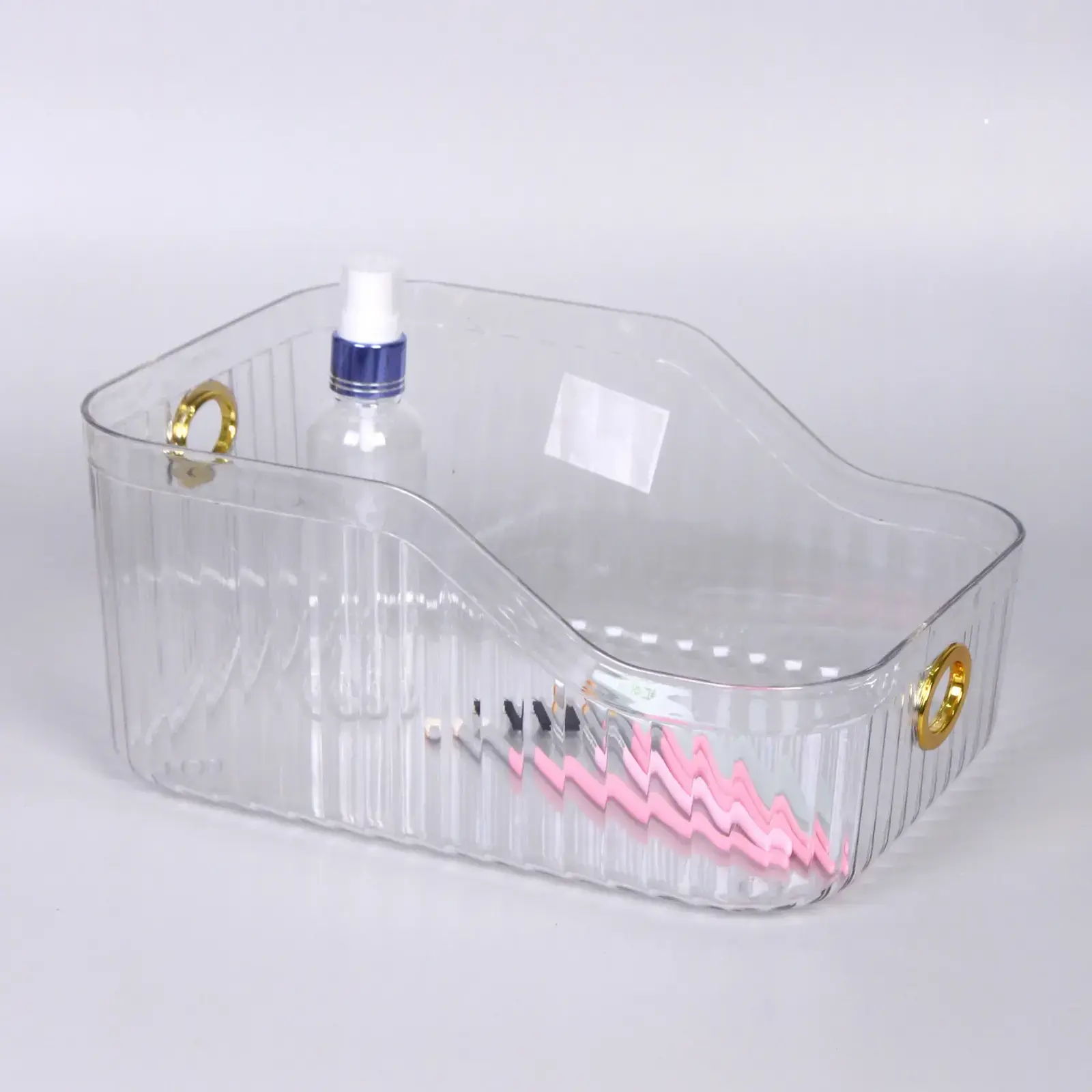 Ищете идеальное решение для хранения ваших вещей? Контейнер для хранения «ЛАМИНГТОН» станет вашим надежным помощником в организации пространства. Его прозрачный цвет позволяет легко видеть содержимое, а удобные золотистые ручки обеспечивают комфорт при переноске. Этот контейнер идеально подходит для хранения косметики, канцелярских принадлежностей или мелочей, которые всегда должны быть под рукой.