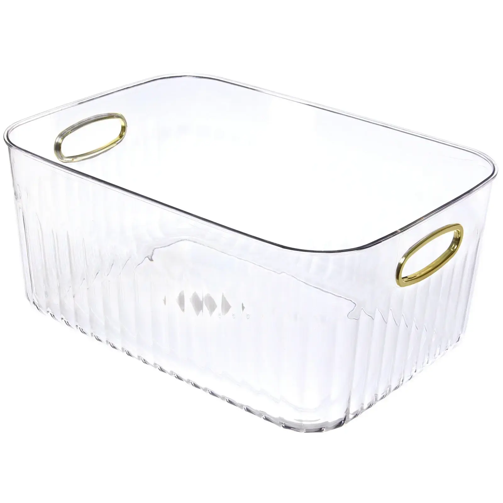 Ищете идеальное решение для организации пространства? Контейнер для хранения «ЛАМИНГТОН» станет вашим надежным помощником в упорядочивании мелких предметов. Его прозрачный цвет и стильный дизайн с золотистыми ручками добавят элегантности в любой интерьер, а рифленая поверхность придаст текстурированный вид.
