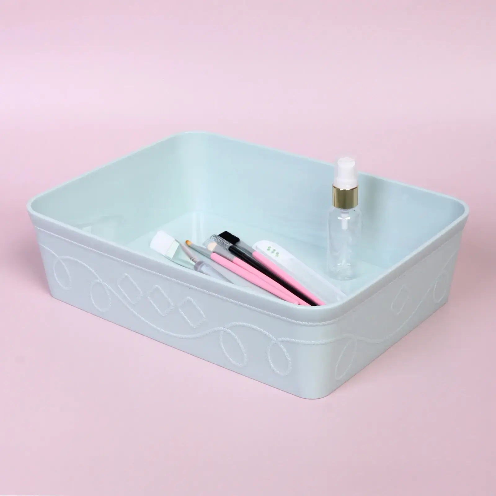Контейнер для хранения «Пинто ФЛО» в цвете аквамарин — это идеальное решение для организации вашего пространства. Его стильный и современный дизайн не только украсит ваш интерьер, но и поможет поддерживать порядок в ваших вещах. Благодаря своим компактным размерам 30х22х8 см, он легко впишется в любую комнату, будь то кухня, ванная или рабочий кабинет.