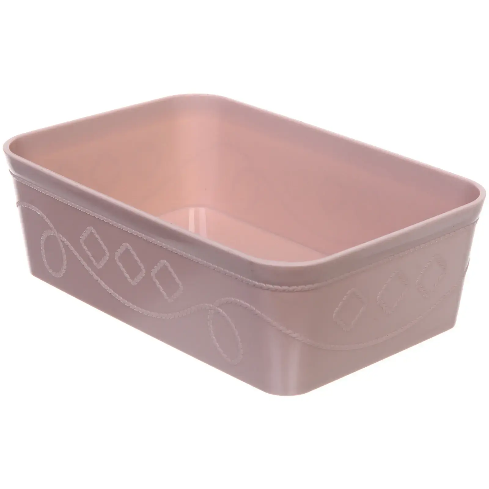 Контейнер выполнен из прочного пластика, что гарантирует его долговечность. Размеры 25х17х8 см делают его достаточно вместительным для хранения различных предметов. Пудровая роза — это универсальный цвет, который легко впишется в любой интерьер, будь то ванная комната, спальня или косметический уголок.