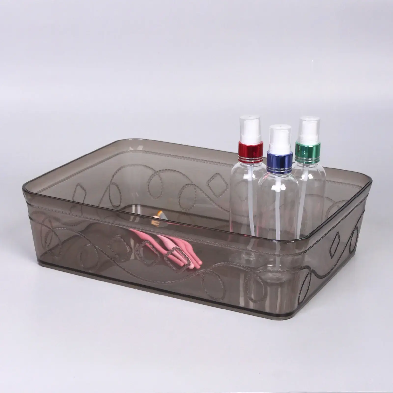 Контейнер предназначен для хранения различных предметов, от косметики до канцелярских принадлежностей. Благодаря своей прямоугольной форме и закругленным углам, он легко помещается в шкафах, на полках или в ящиках. Подходит для использования в домашних условиях, офисах и даже в поездках.