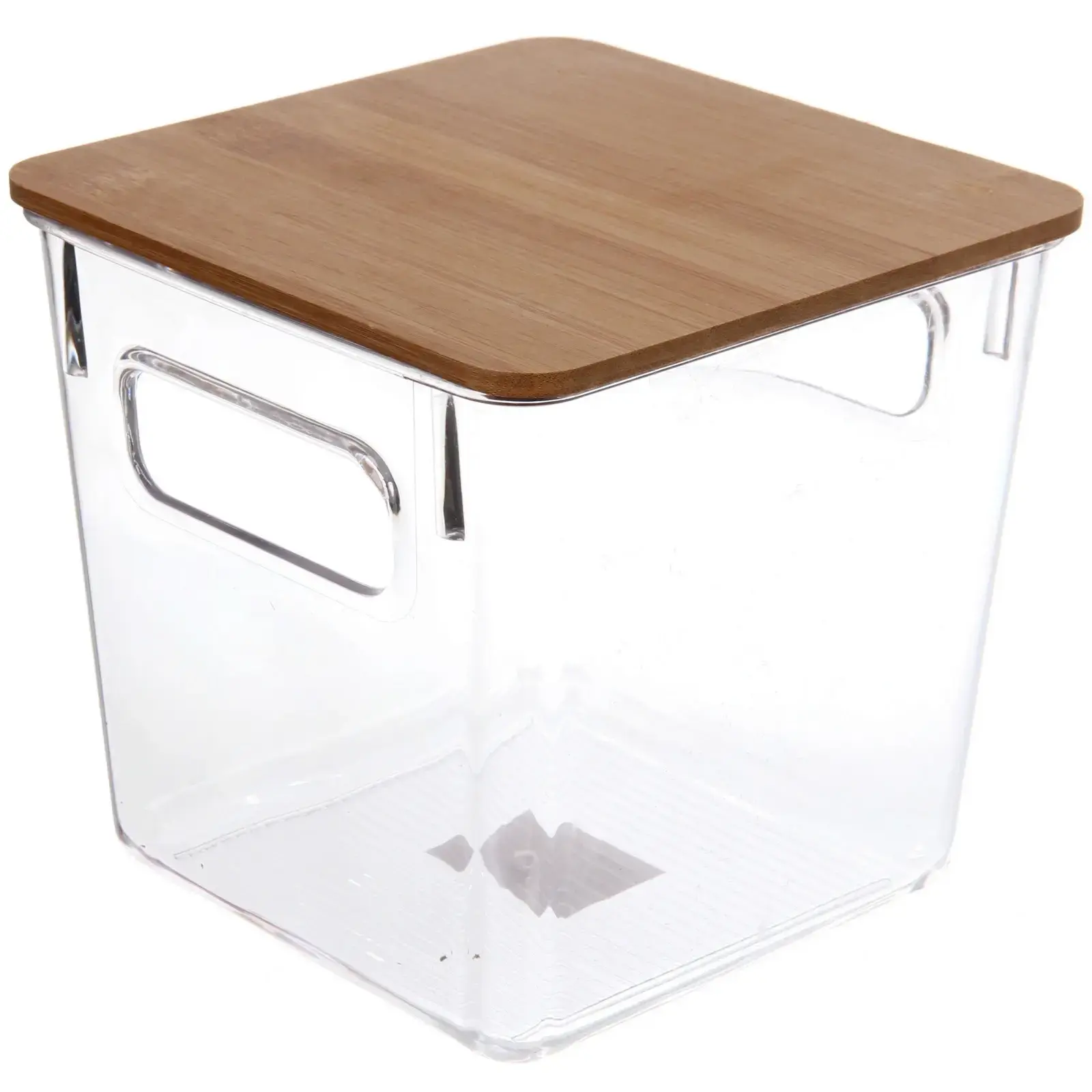 Контейнер выполнен из качественного пластика, что обеспечивает его долговечность и легкость в уходе. Бамбуковая крышка не только красива, но и устойчива к повреждениям, что делает контейнер идеальным для ежедневного использования. Размеры контейнера — 15.5 см в ширину, 15.5 см в глубину и 14.5 см в высоту, что делает его достаточно вместительным для хранения различных предметов.