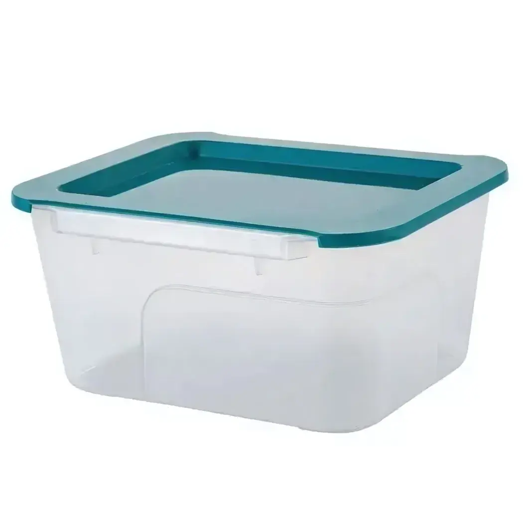 Форма контейнера — прямоугольная с закруглёнными краями, материал — пластик, цвет крышки — в ассортименте (матовый синий или бирюзовый). Объём составляет 0,8 литра, оптимально для компактного хранения. Крышка плоская, без ручек и замков, обеспечивает лёгкое открытие и надёжное закрытие. Если вы ищете практичное решение для хранения, контейнер BERGEN FJORD S станет вашим помощником каждый день.