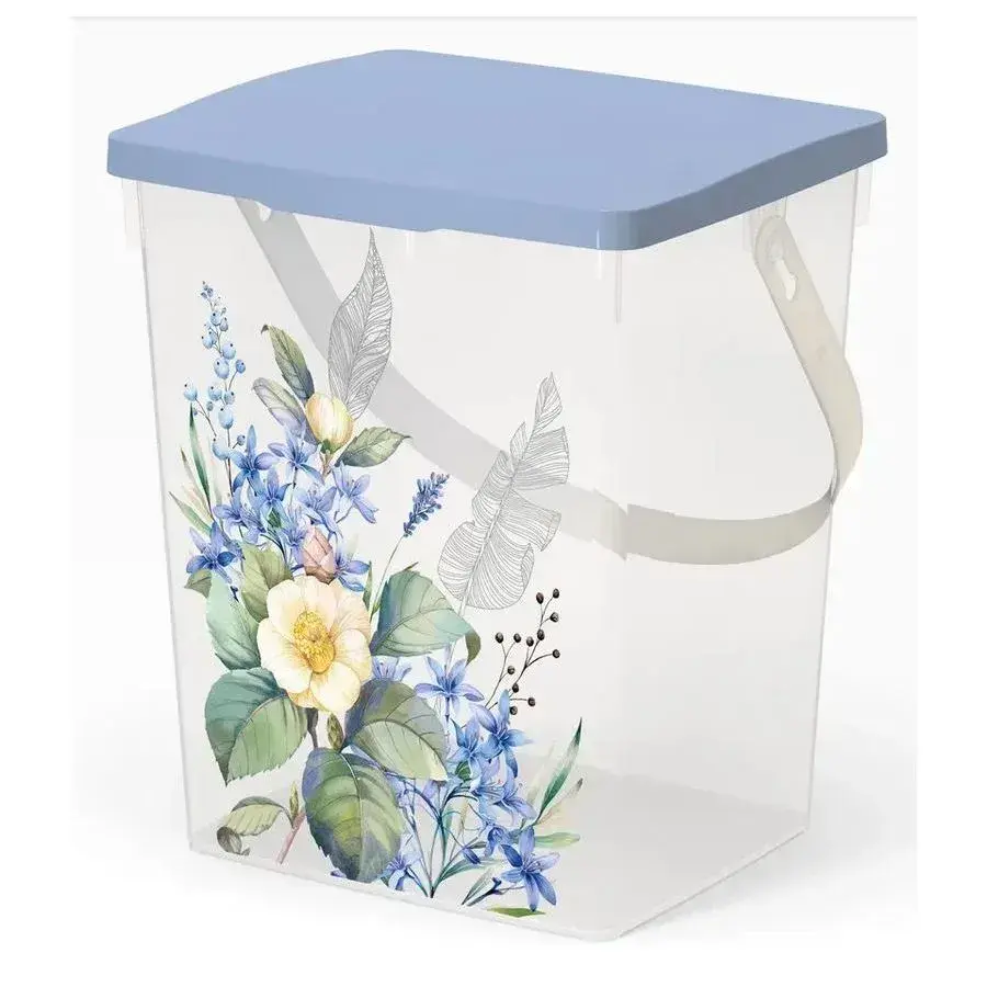 Контейнер для хранения «Цветущий сад» 5л, прозрачный корпус, голубая крышка с ручкой