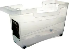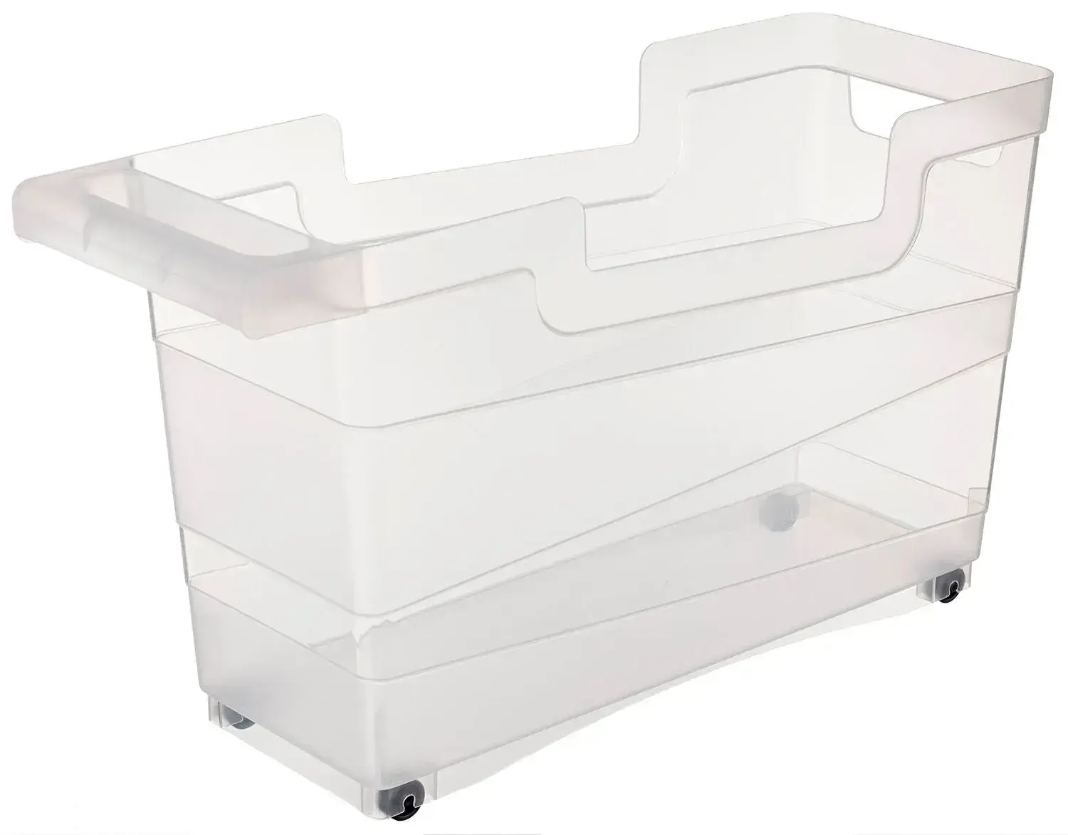 Контейнер оснащён маленькими колёсиками, что позволяет без усилий перемещать его даже при полной загрузке. Вырезы по верхнему краю и боковая ручка обеспечивают удобный захват и простоту переноса. Подходит для хранения белья, игрушек, бытовых аксессуаров, канцелярии и множества других вещей.