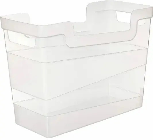 Объём — 10,5л, материал — пластик, цвет — прозрачный. Размеры: 34,2х25,3х10,5см. Контейнер занимает минимум места при хранении и идеально впишется в любой интерьер благодаря лаконичному дизайну.