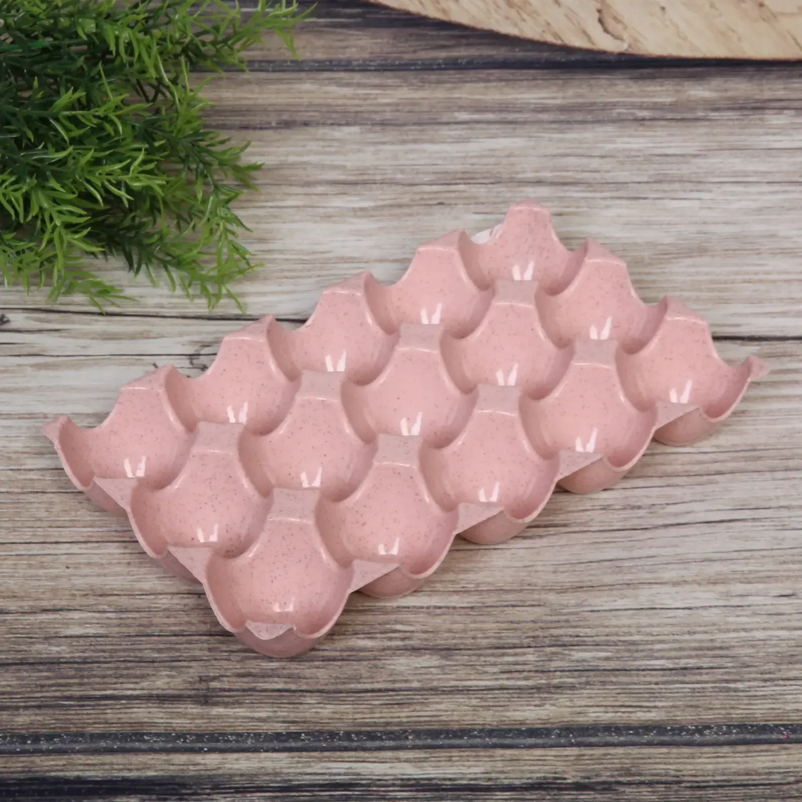 Контейнер доступен в двух цветовых решениях: нежно-розовом и сером с текстурой. Материал изготовления – высококачественный пластик, безопасный для хранения пищевых продуктов. Размер каждой ячейки специально разработан для стандартных куриных яиц.
