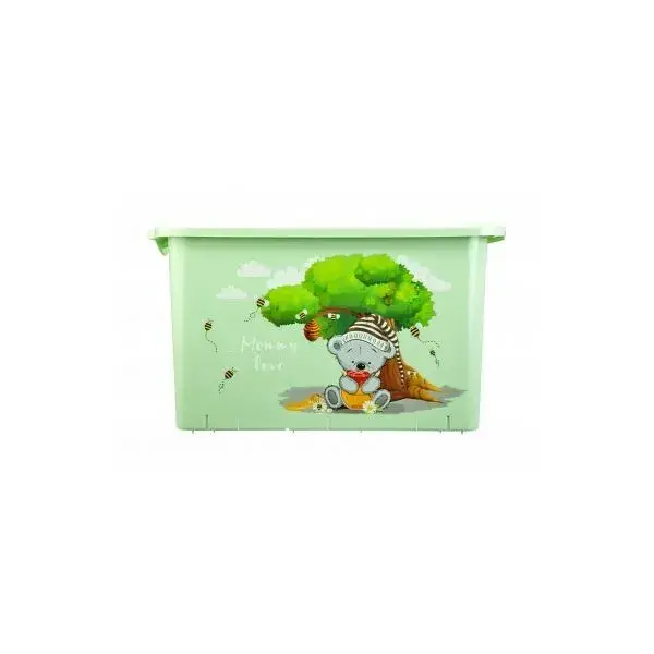 Очаровательный рисунок с медвежонком в шапке и банкой мёда превращает обычный ящик в элемент декора детской. Светло-зелёный цвет гармонично сочетается с любым интерьером, а надпись «Мама любит» добавляет тёплый семейный акцент.