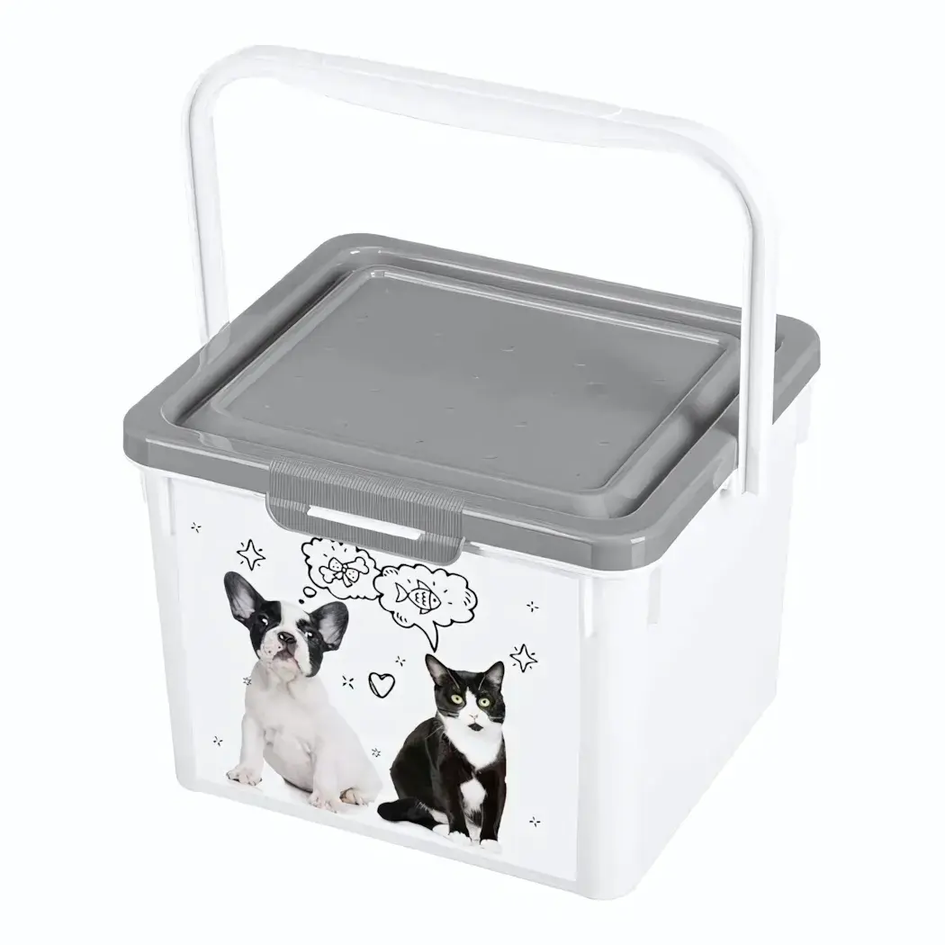 Этот контейнер идеально подходит для владельцев домашних питомцев, которые ценят практичность, чистоту и удобство. Благодаря удобной ручке его легко переносить, а плоская крышка позволяет ставить один контейнер на другой, экономя место в шкафу или кладовой. Конструкция и материалы обеспечивают долговечность и простоту очистки.