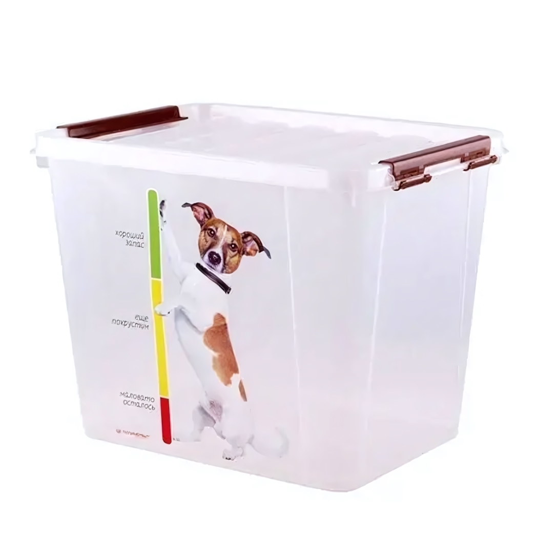 Прозрачный контейнер с цветовой шкалой позволяет мгновенно оценить количество корма и спланировать покупку. Идеальное решение для ответственных владельцев собак и кошек, которые ценят порядок и заботятся о свежести питания питомцев.