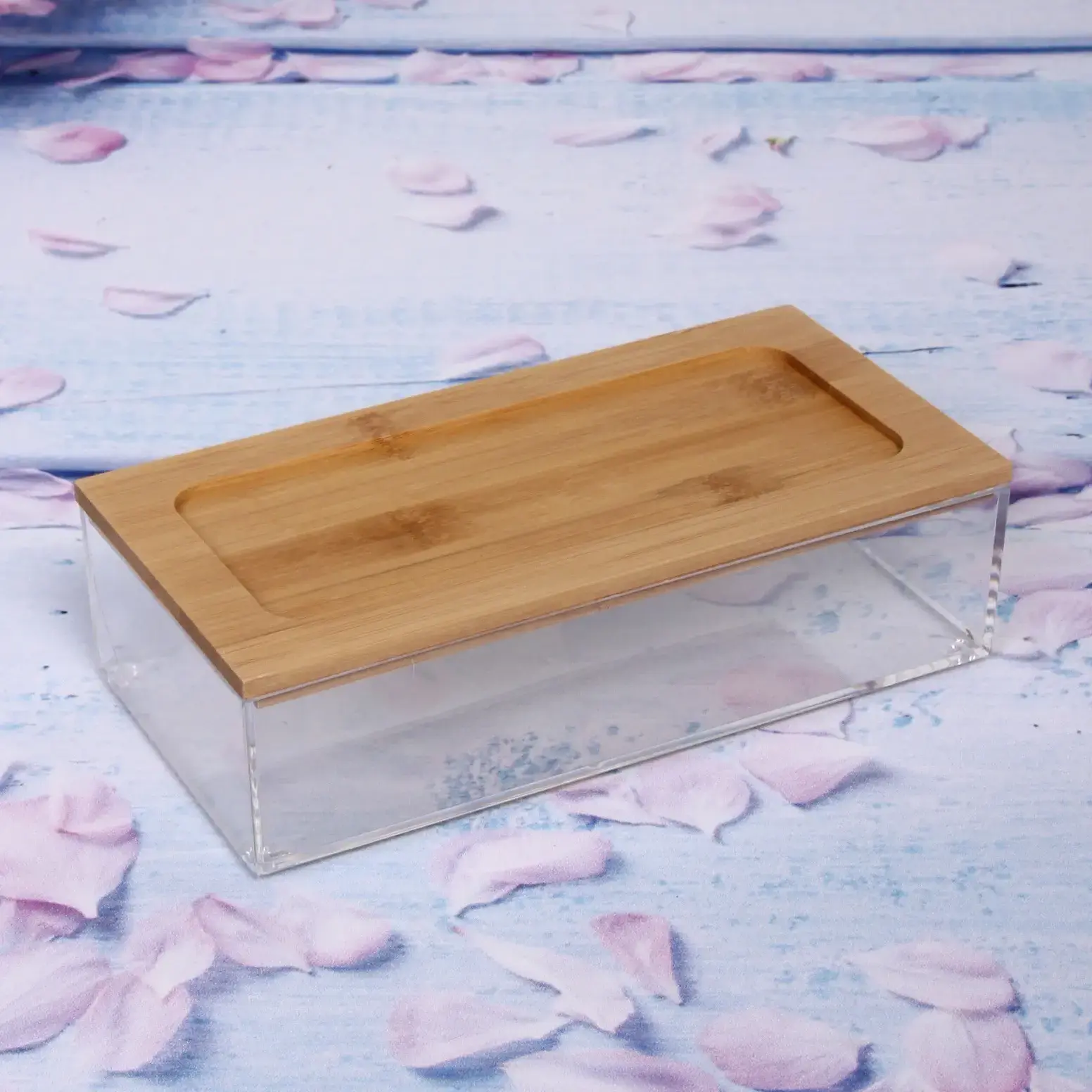 Этот компактный контейнер размером 19х9х5 см создан для тех, кто ценит порядок и эстетику в доме. Его уникальное сочетание материалов — прочного прозрачного пластика и натурального бамбука — делает его идеальным решением для хранения мелких предметов.