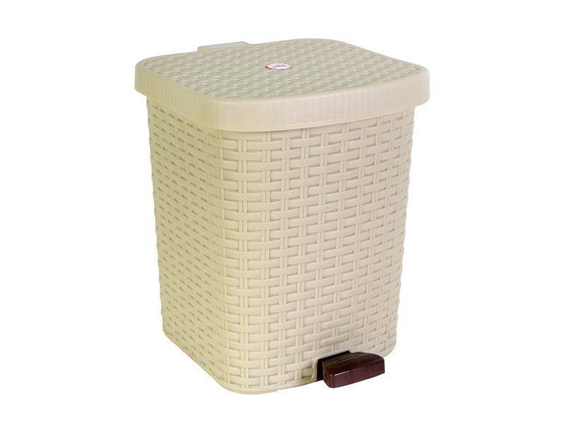 Контейнер для мусора 12л, педальный, бежевый, с плетёным узором