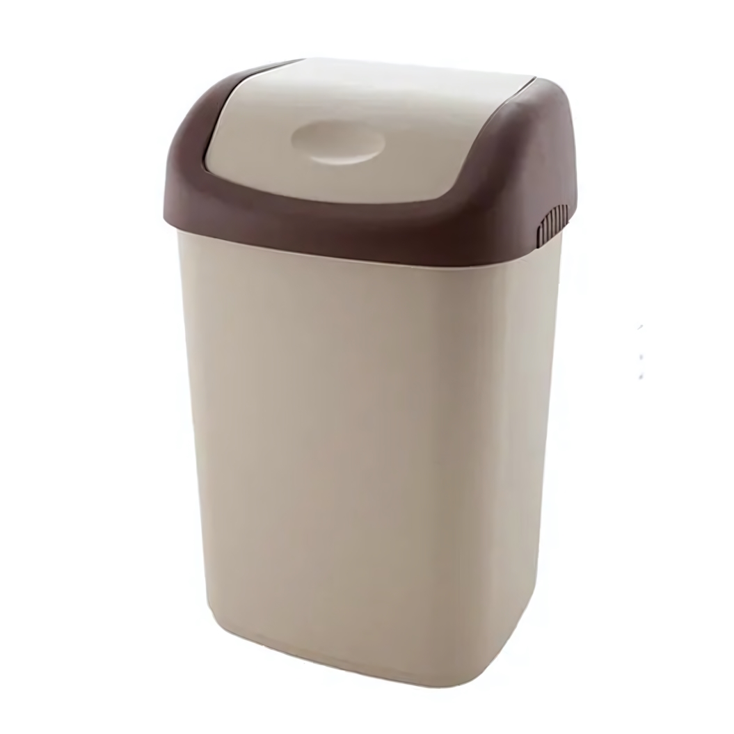 Контейнер объёмом 14 литров оптимален для сбора бытовых отходов в местах с ограниченным пространством. Прямоугольная форма с закруглёнными углами позволяет эргономично разместить его в углу, под раковиной или в нише, экономя полезную площадь. Надёжная крышка плотно закрывает ёмкость, помогая содержать мусор вне поля зрения и препятствуя распространению запахов.