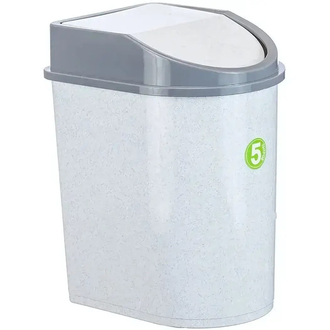 Контейнер для мусора пластиковый 5л с крышкой, мраморный дизайн, удобное открывание