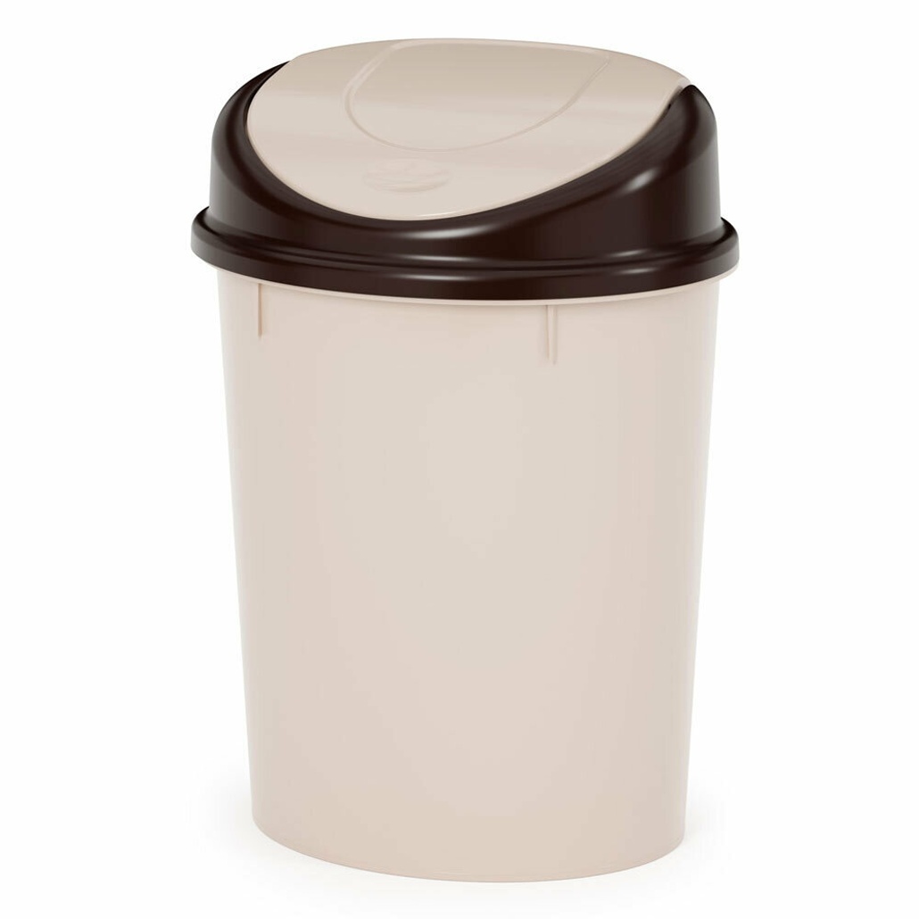 Контейнер для мусора 8л овальный, бежевый/коричневый, пластиковый с крышкой