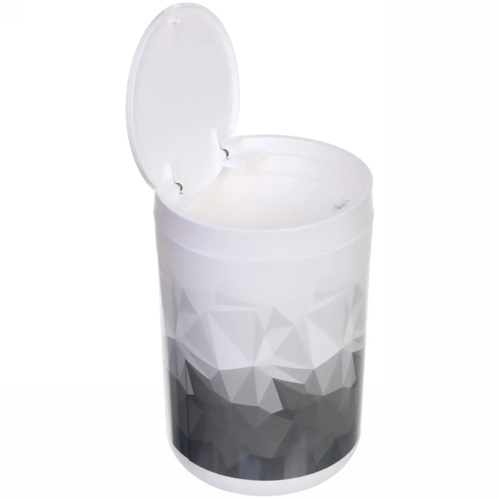Контейнер имеет цилиндрическую форму и плотно прилегающую крышку, что обеспечивает герметичность и предотвращает распространение неприятных запахов. Он идеально подходит для использования в кухне, ванной комнате или офисе. Легкий и удобный в использовании, контейнер легко открывается и закрывается, что делает его практичным выбором для повседневного использования.