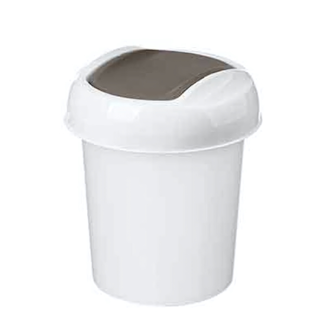 Компактный контейнер с инновационной крышкой-маятником обеспечивает гигиеничное и бесшумное использование — просто нажмите рукой, чтобы выбросить мусор. Идеальное решение для рабочих столов, ванных комнат и кухонных поверхностей.