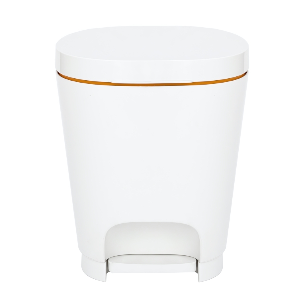 Контейнер для мусора педальный, 8л, белый/оранжевый, пластик, компактный