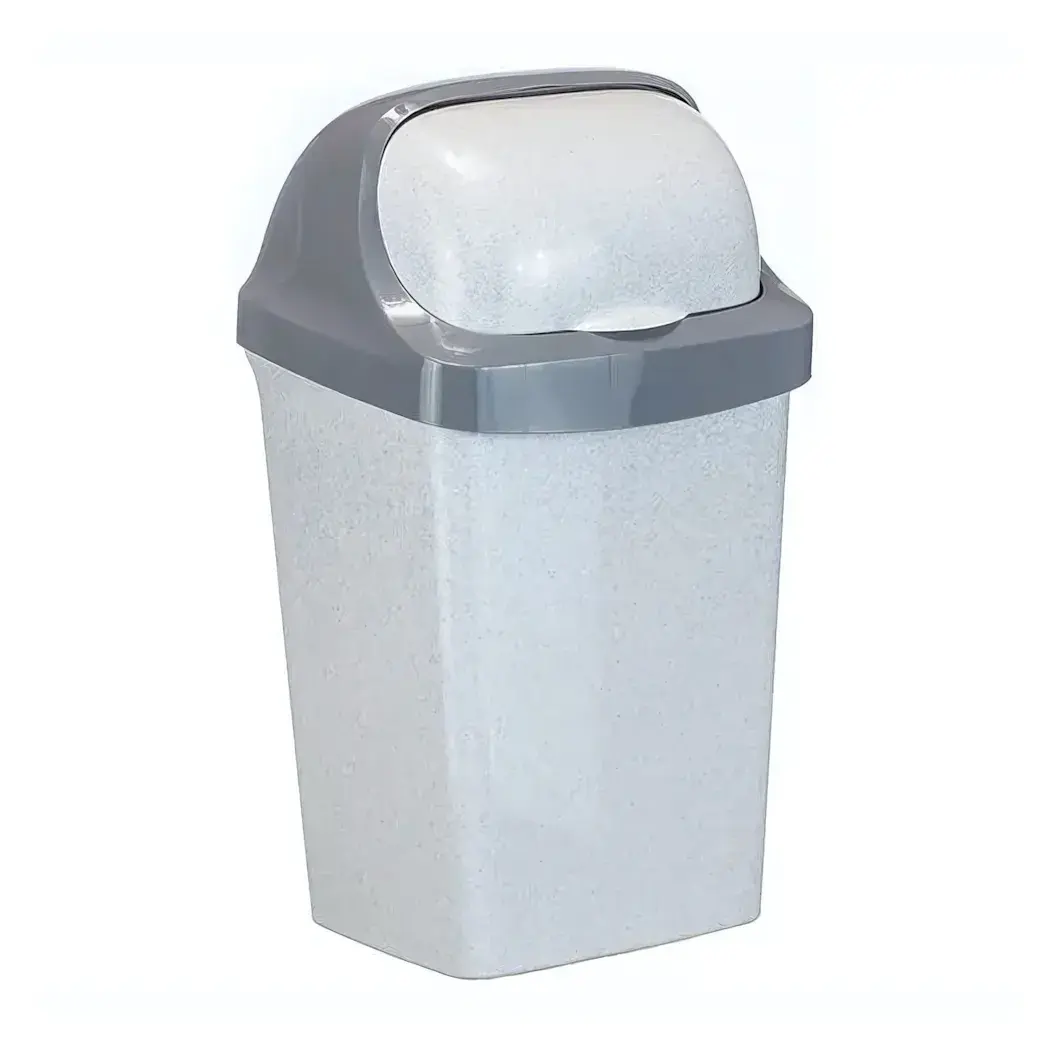 Прямоугольная форма с закруглёнными углами экономит пространство и позволяет устанавливать контейнер вплотную к стене. Матовая поверхность «мрамор» скрывает мелкие царапины и следы использования.