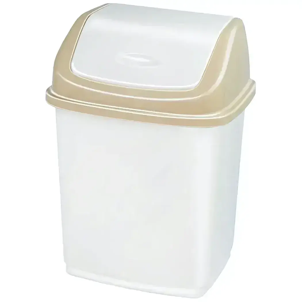 Контейнер оборудован перекидной крышкой, что обеспечивает легкость в использовании и предотвратит неприятные запахи. Он идеально подойдет для небольшого объема мусора, что делает его незаменимым при организации пространства. Простота конструкции помогает поддерживать чистоту и порядок, так как его легко мыть и очищать.