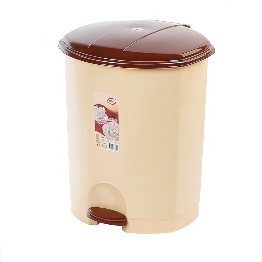 Компактные габариты позволяют разместить контейнер даже в узком пространстве между мебелью. Сочетание кремового корпуса с коричневой крышкой создает нейтральную цветовую гамму, которая впишется в любой интерьер. Доступны и другие варианты расцветок.